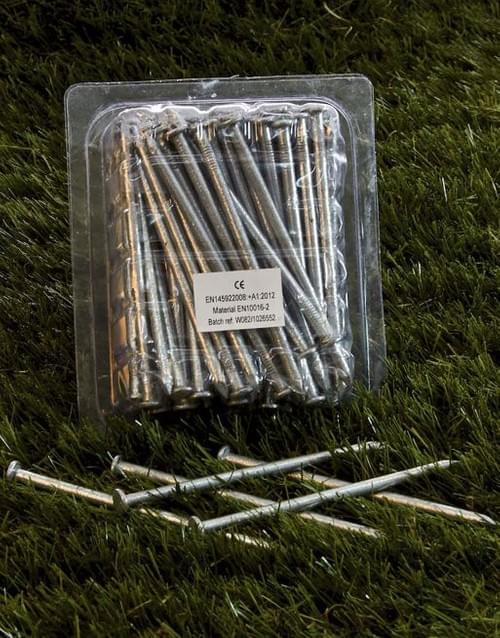These round wire galvanised nails are perfect for keeping your artificial grass down and in its correct place with use of a frame to help secure it to the perimeter. This tub contains 77 nails, each measuring 4.5mm x 100mm.